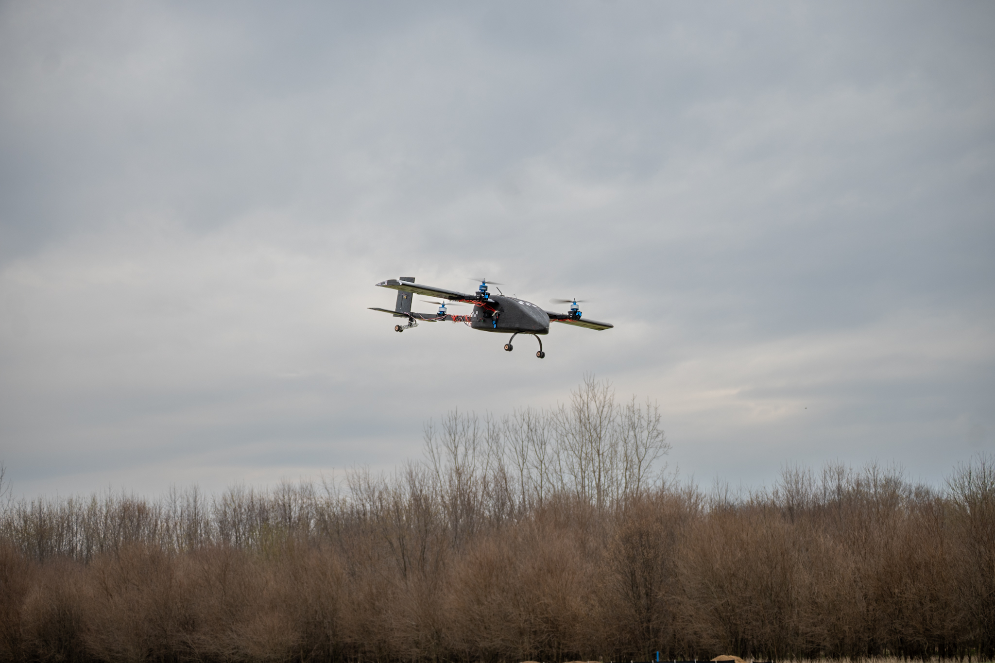In addition to the manufacturing, I also lead the teams flight testing and resulting controls work. Testing as a whole included contained subcomponents validation on mechanical systems such as the tiltrotors, but also full flight tests of the entire aircraft. Ardupilot was used as the primary flight software, and a combination of flight logs and video were used to improve flight control through PID tuning. Logs pulled from both the crashes and short test flights were crucial in perfecting transition capabilities as well.